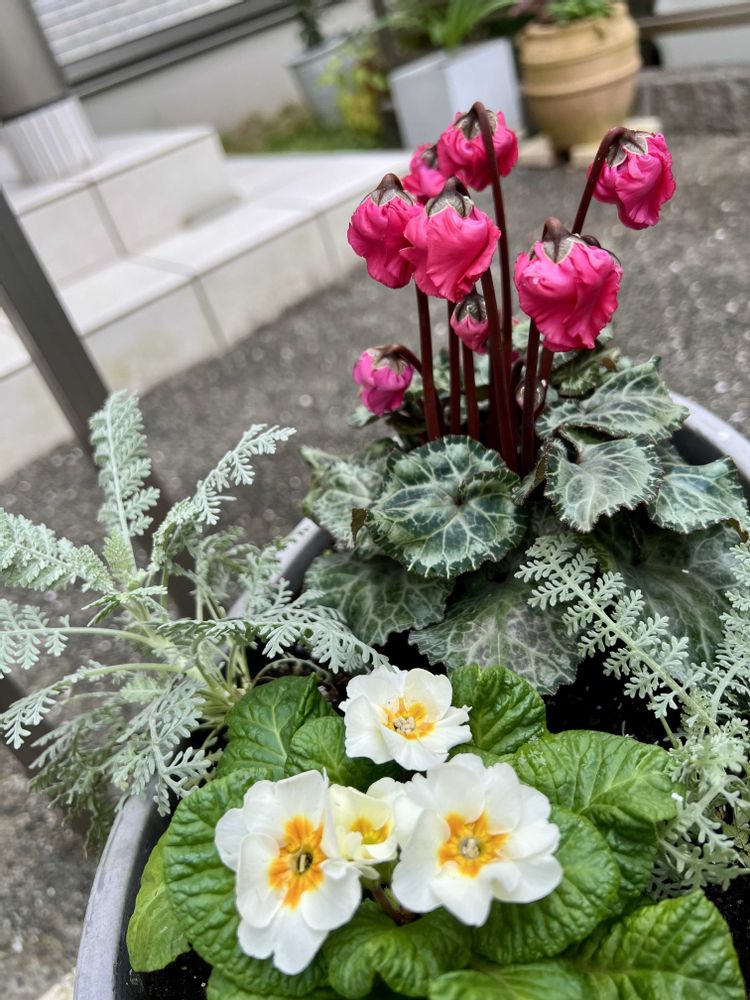 冬の寄せ植え☃️シクラメン(変わり咲き)・プリムラ ジュリアン