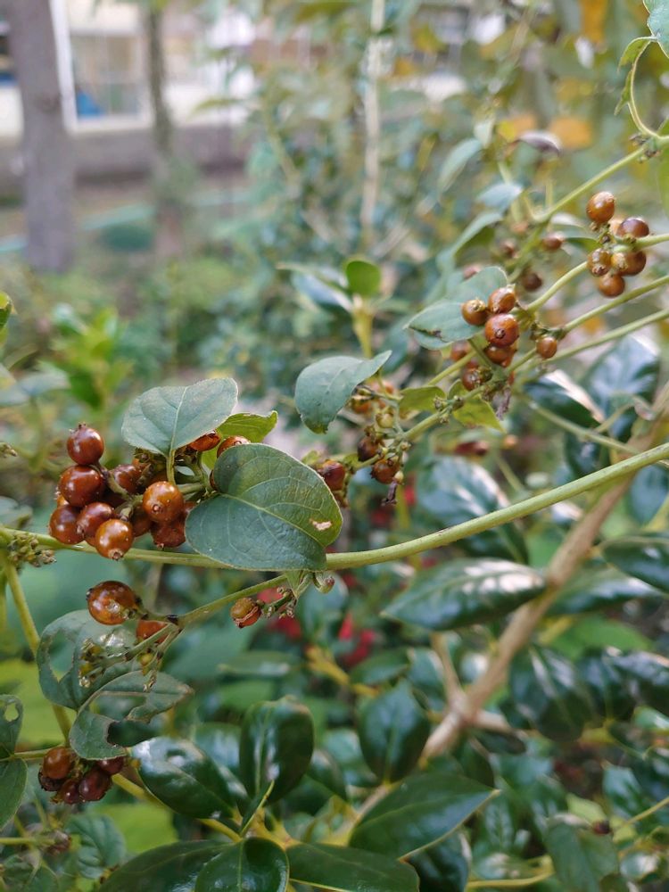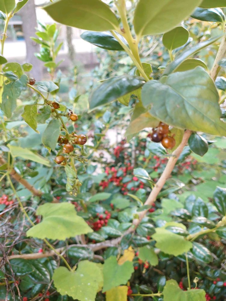 3️⃣4️⃣ヤバネヒイラギモチ🔴🌿だと思います❣️8月に見つけた時は緑の実でした🟢🟢🟢🌿今日見たら真っ赤に🔴🔴🔴