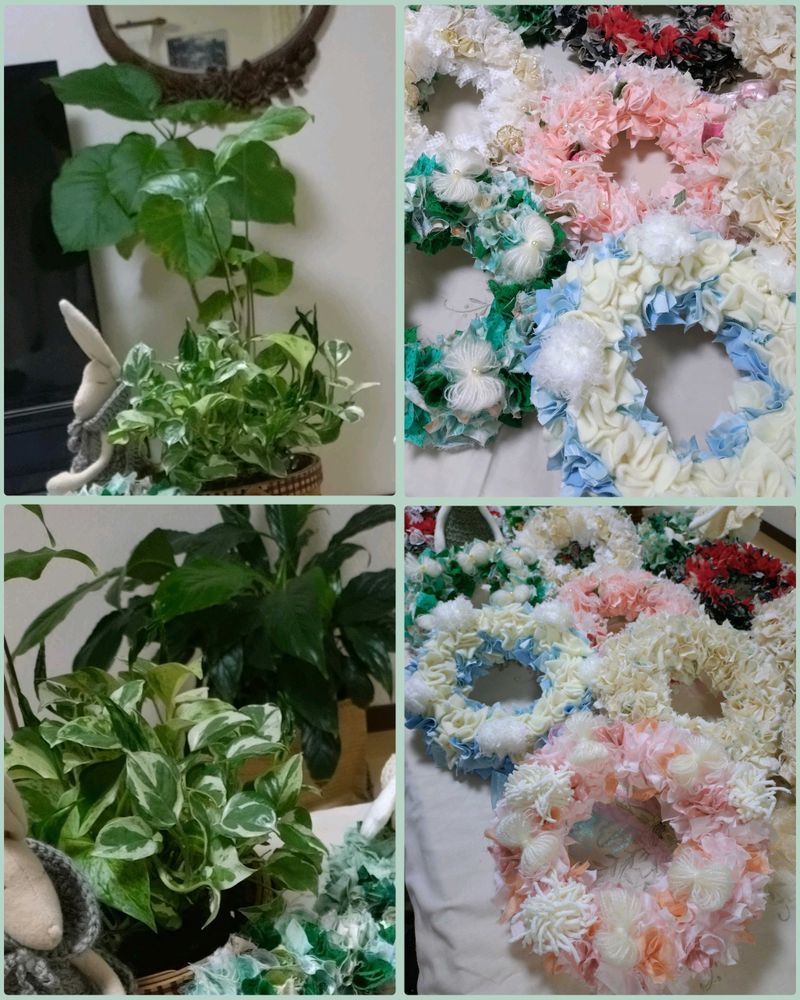 ウンベラータ,斑入りポトス,手作り布リースの投稿画像