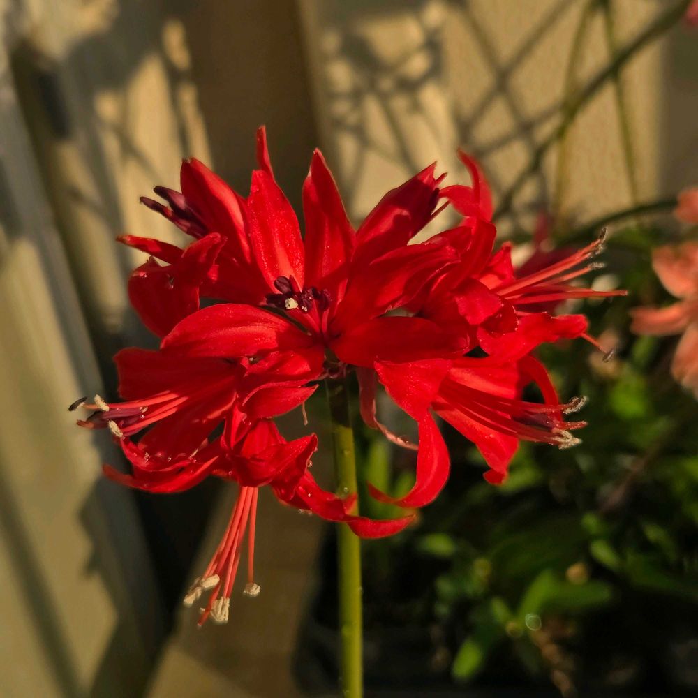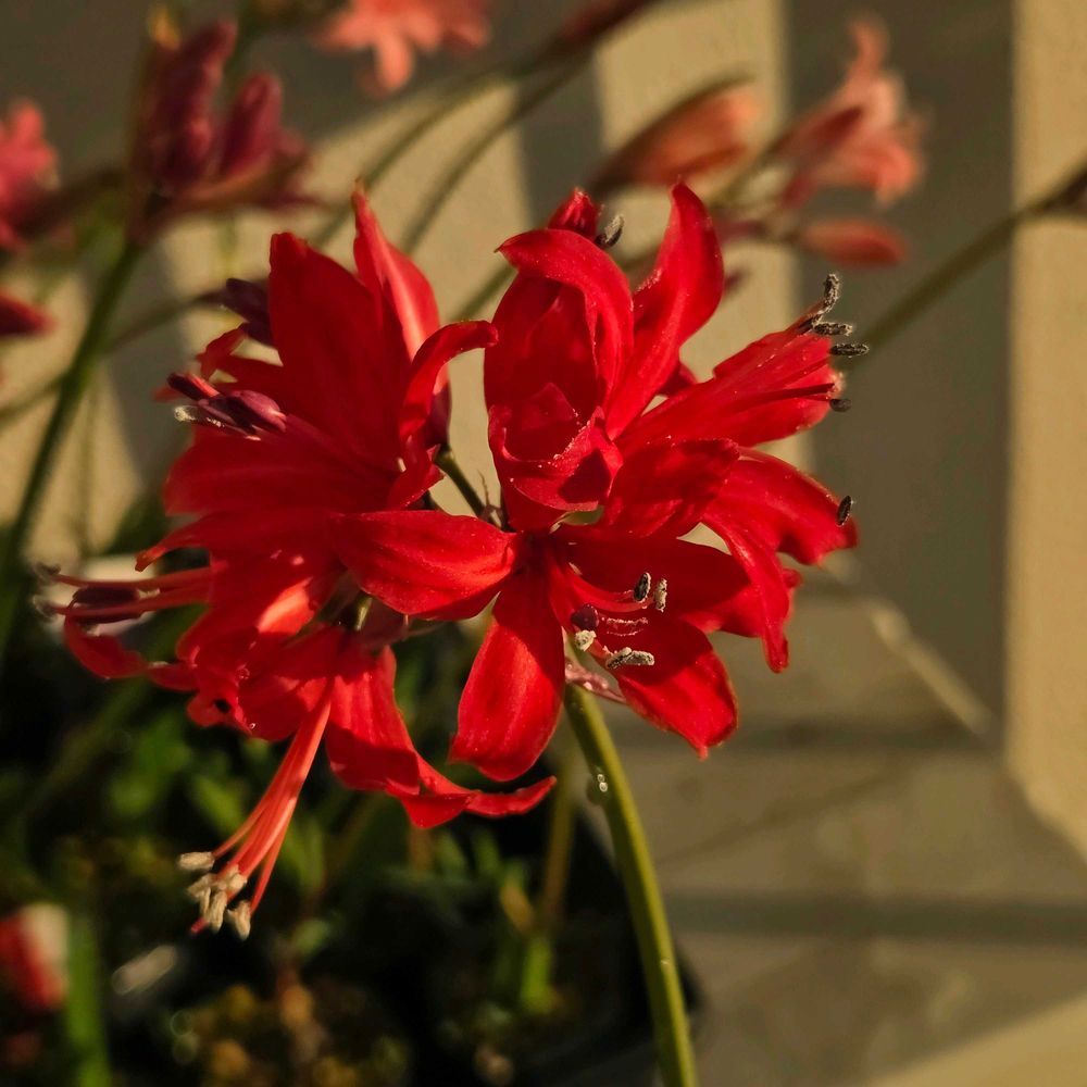 ネリネ栽培を始めたばかりの頃は赤のネリネはヒガンバナと雰囲気被るからと避けていたのですが、実際に育ててみると花弁が広い'足柄'はヒガンバナとは全く雰囲気が違って綺麗でした😍😍