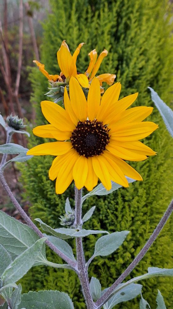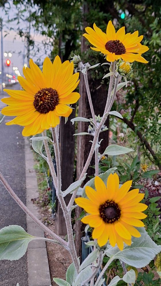 銀葉のきれいな白妙ヒマワリさん、マーブル模様のオシロイバナさん、どちらも寒さに耐えてきれいに咲いていますねー💕😍💛😍🌻