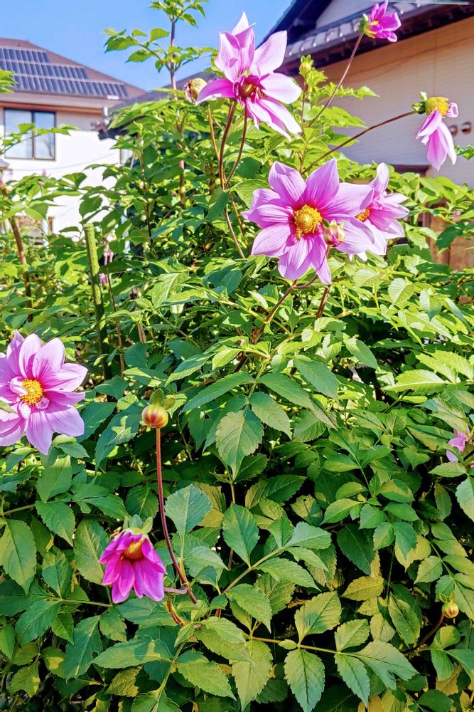 駅近くの広い屋敷の矮性皇帝ダリア、