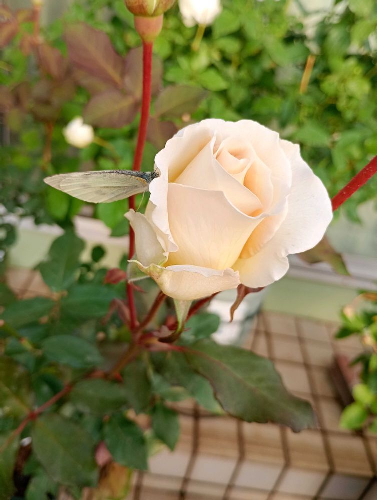 サーシャさんにモンシロチョウがとまっていました。寒いもんね〜🥹