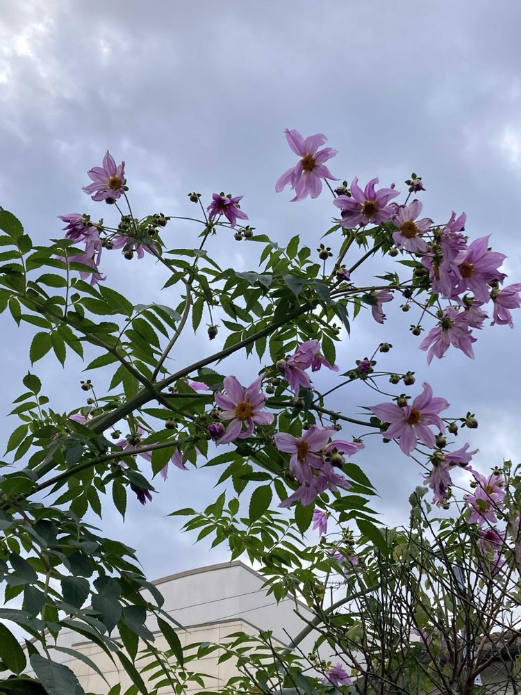 こんな曇天でも、皇帝ダリア、今年は小さめのお花ですが、健気に咲いて綺麗です💓