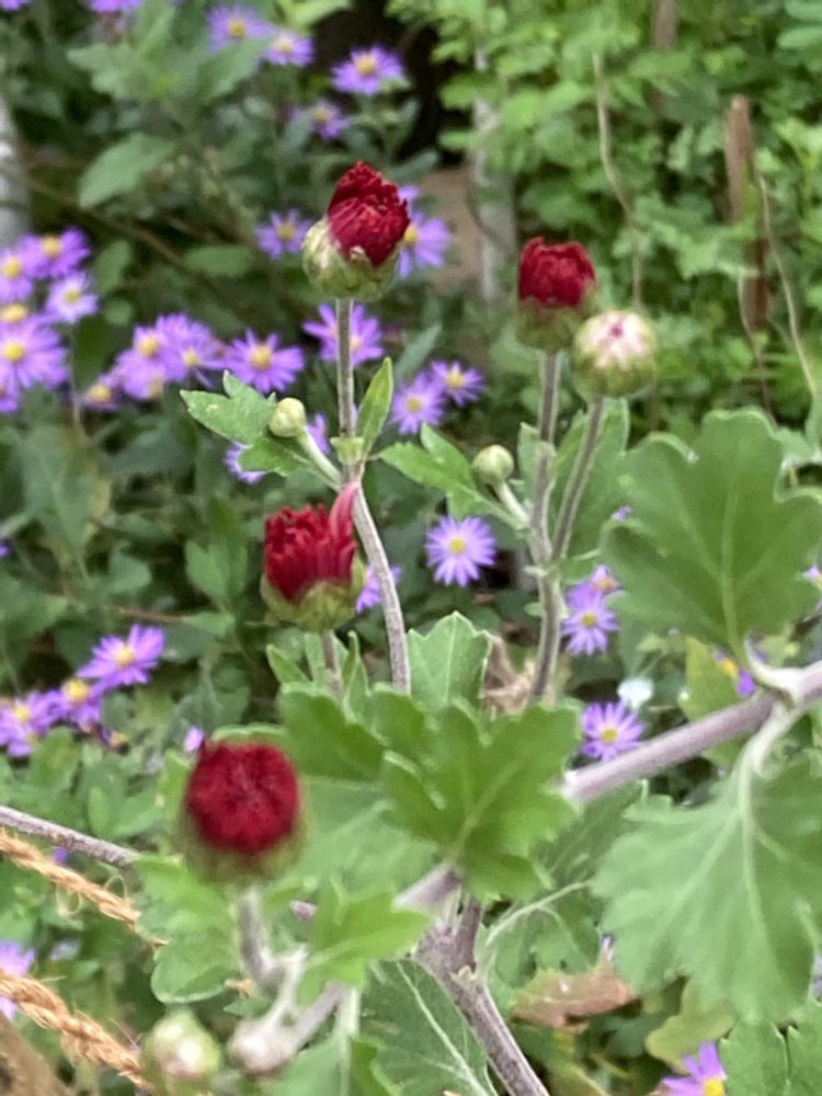 ③④⑤毎年赤い菊が蕾を沢山つけて
