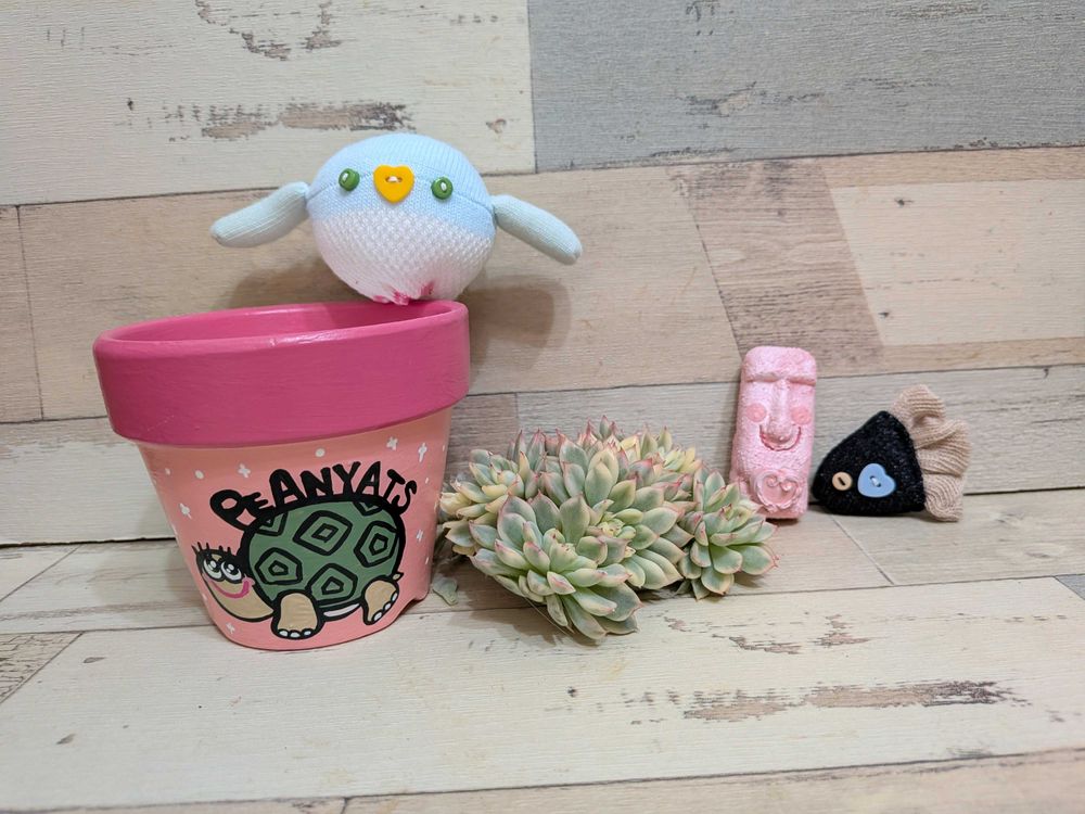 リメ鉢は、防水加工はしていますが、雨ざらしにはしないで下さいね。