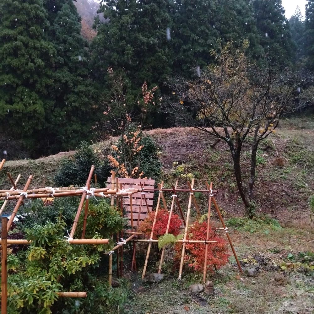 雪囲いがまだ終わってなくて😂