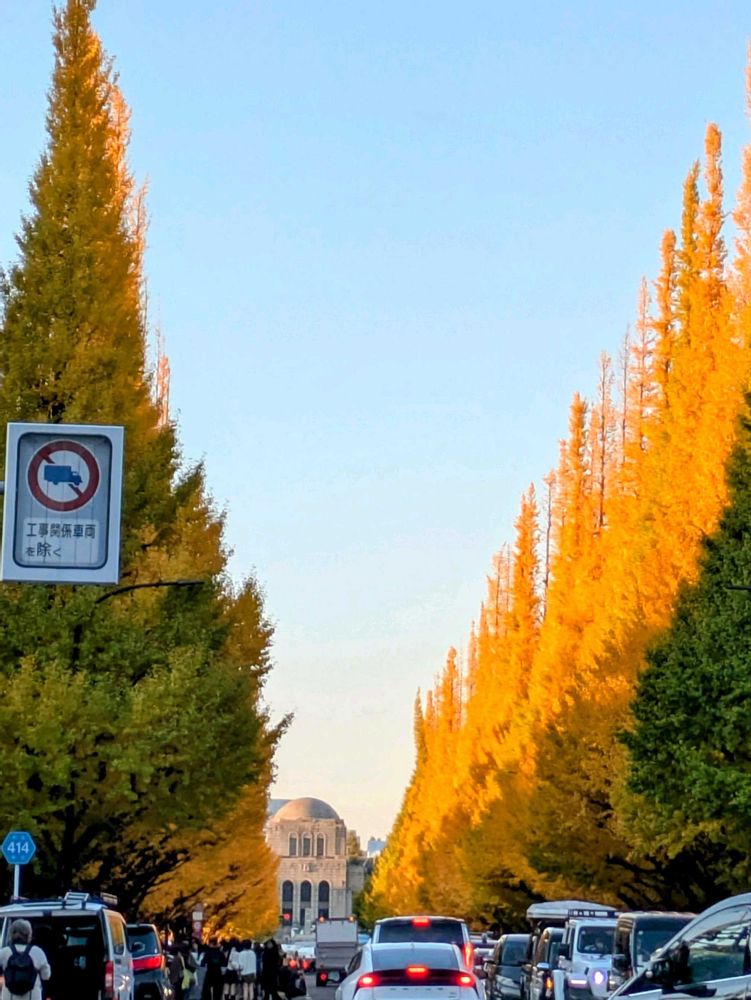 昨日の外苑銀杏並木はまだ半分💛でしたが、観光客の多いこと…