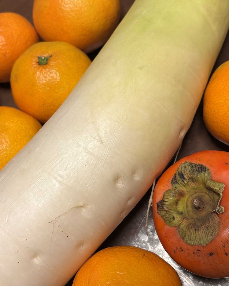大根&ブロッコリー&赤大根&柿&私の好きなみかんも貰ったので…