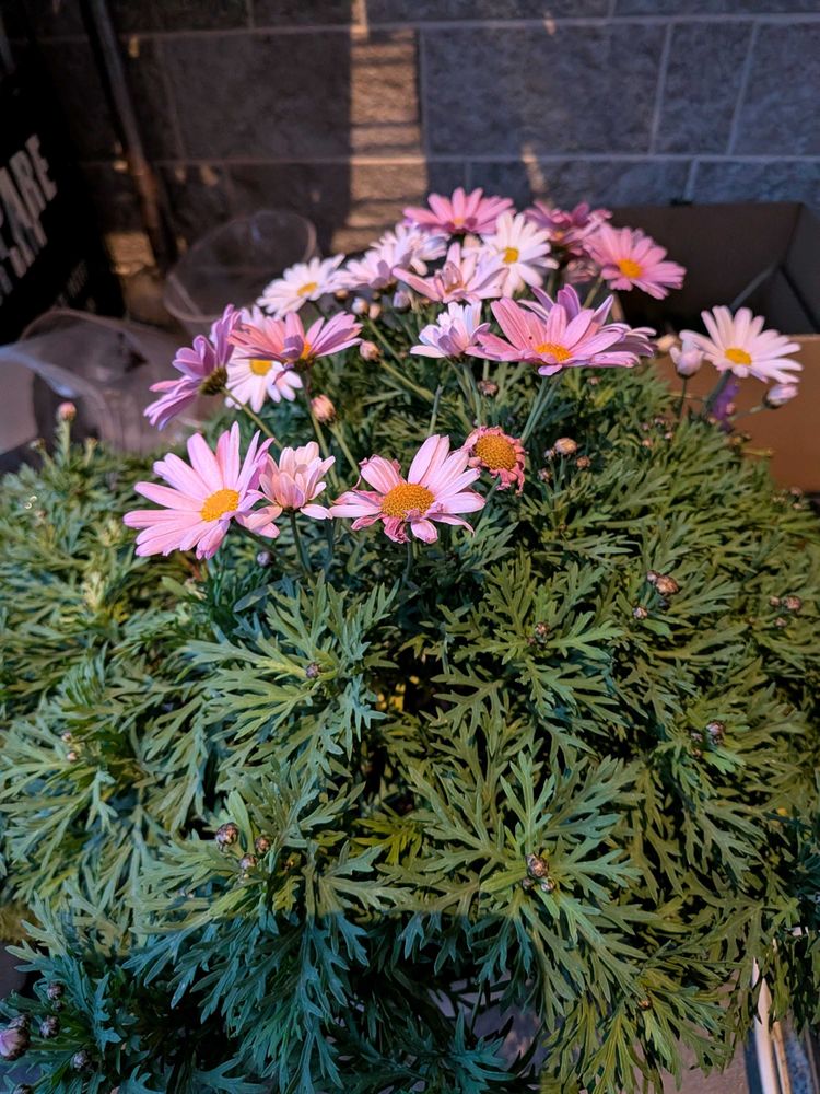 マーガレットも風除室に避難させて温室状態で開花し始めまたので今更ながら枯れ枝、枯れ葉を取りました😃