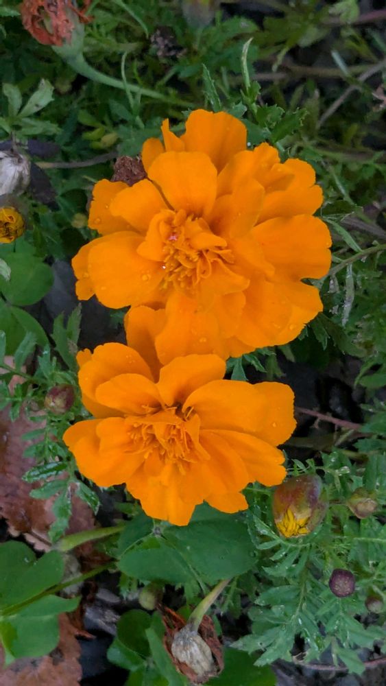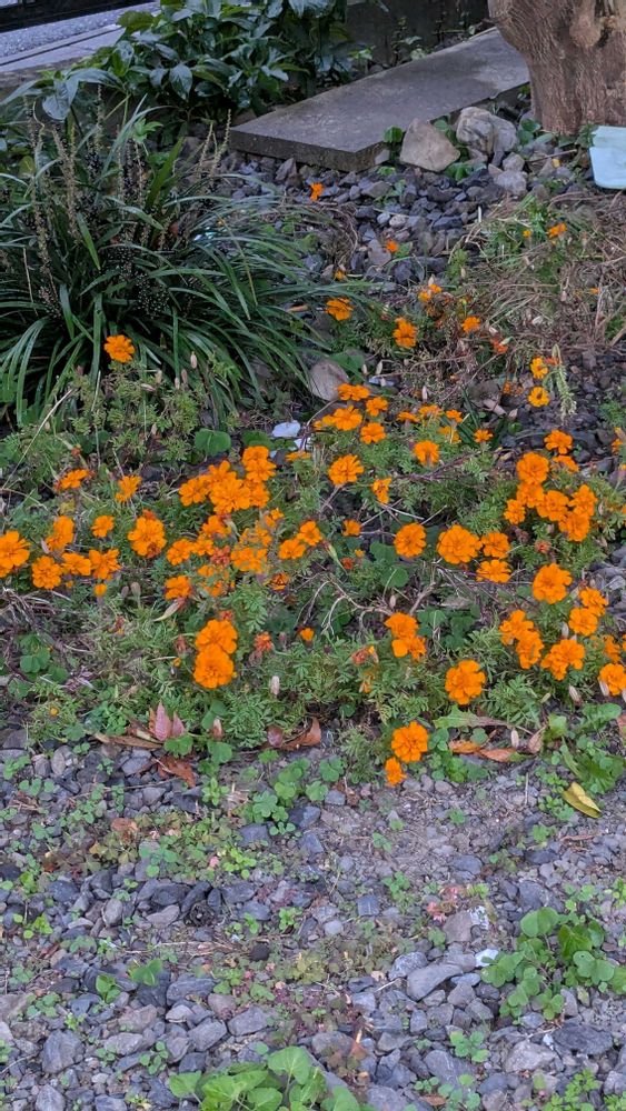 こぼれ種でマリーゴールドが綺麗に咲いています。