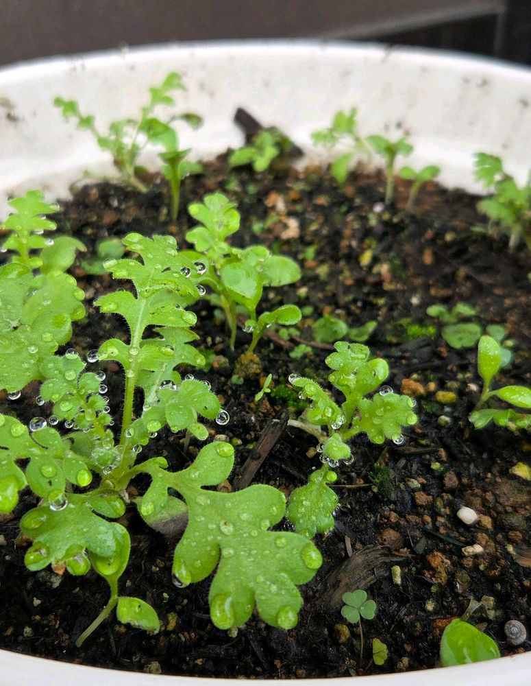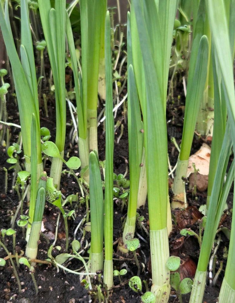 水仙の葉がグングンと伸び、こぼれ種のネモフィラの芽🌱が💦