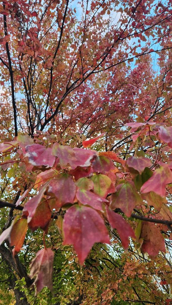 今年のナンキンハゼの色付きは、場所により早い木と、そうでない木があるようですね。💚🤎❤♪