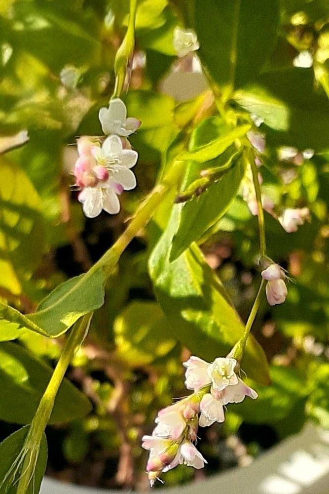 ‼️葉っぱは剪定してまた伸びるのは知ってましたが、お花も咲くのね。すごぉい。たくましーい✌️こちらの藍も花咲き出しました。でもほとんどそのままほったらかし💦