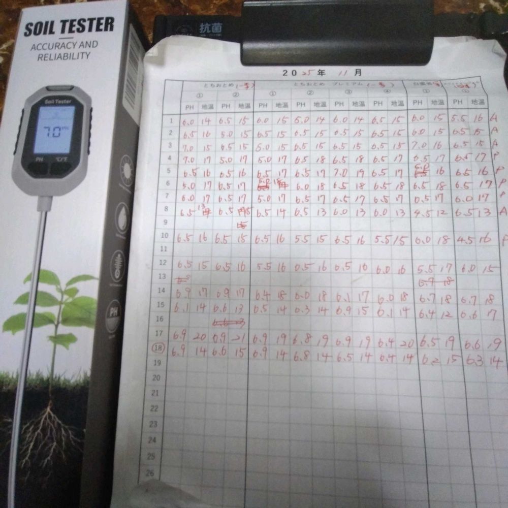 それから2枚目は11月1日から新しく土壌酸度計を購入して、土の酸性度や地温、水分量、湿度のデータ収集していました。