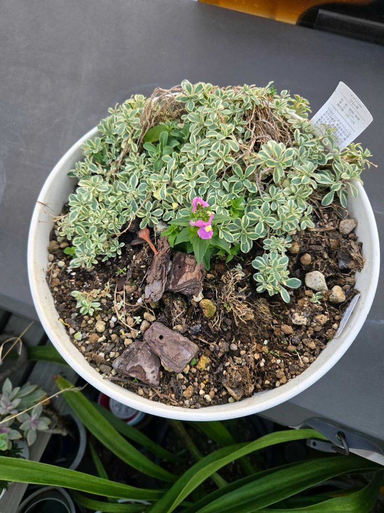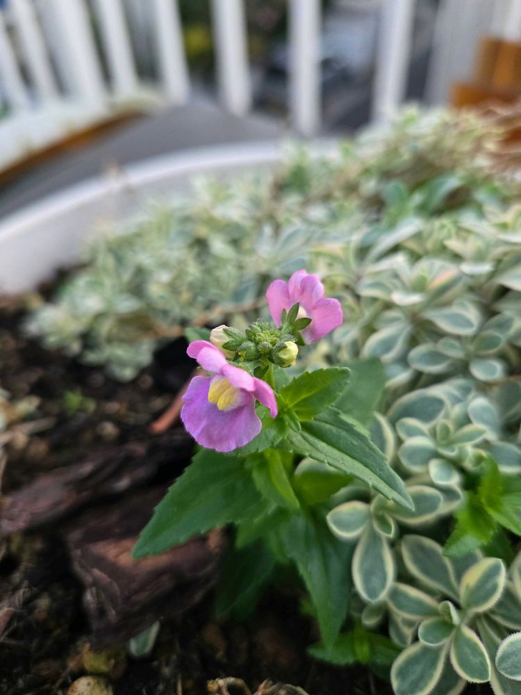 シレネ・ユニフローラと寄せ植にしていたメネシアが、ひと苗だけ復活して来ました。