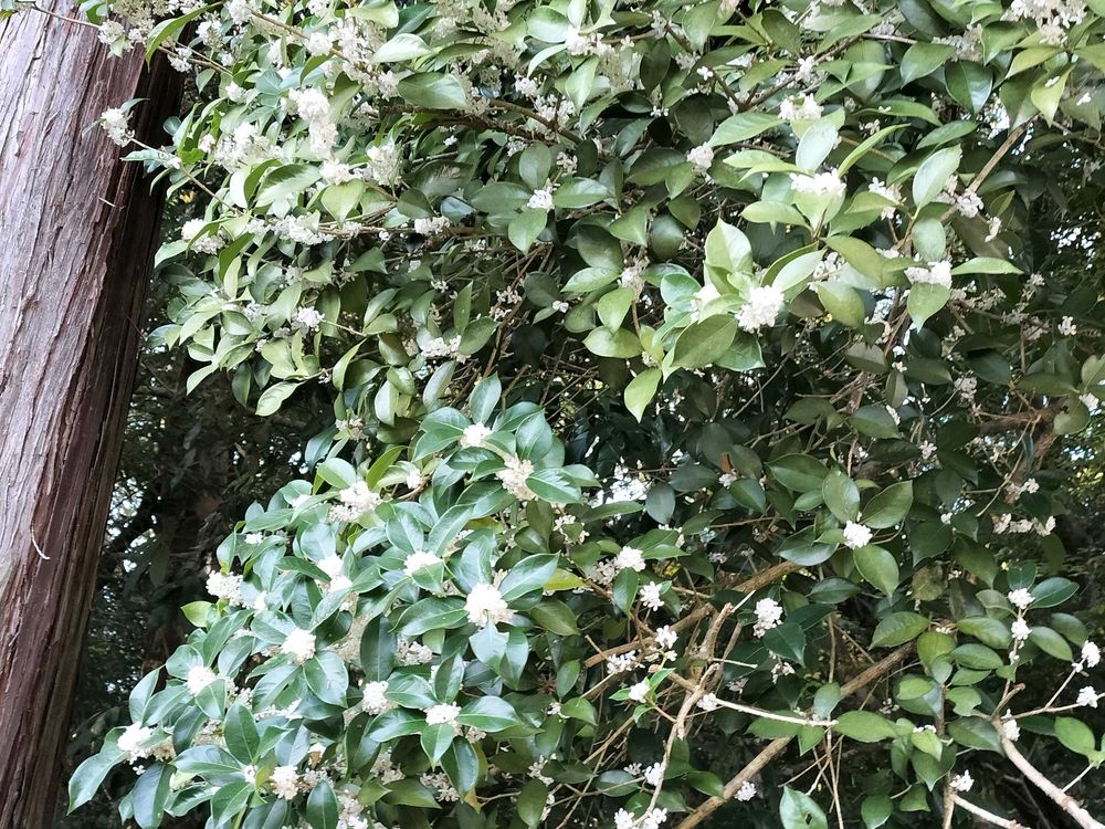 宇佐神宮でずっといい香りがしていて銀木犀だと思ってましたが少し香りも違う爽やかな甘い香り。