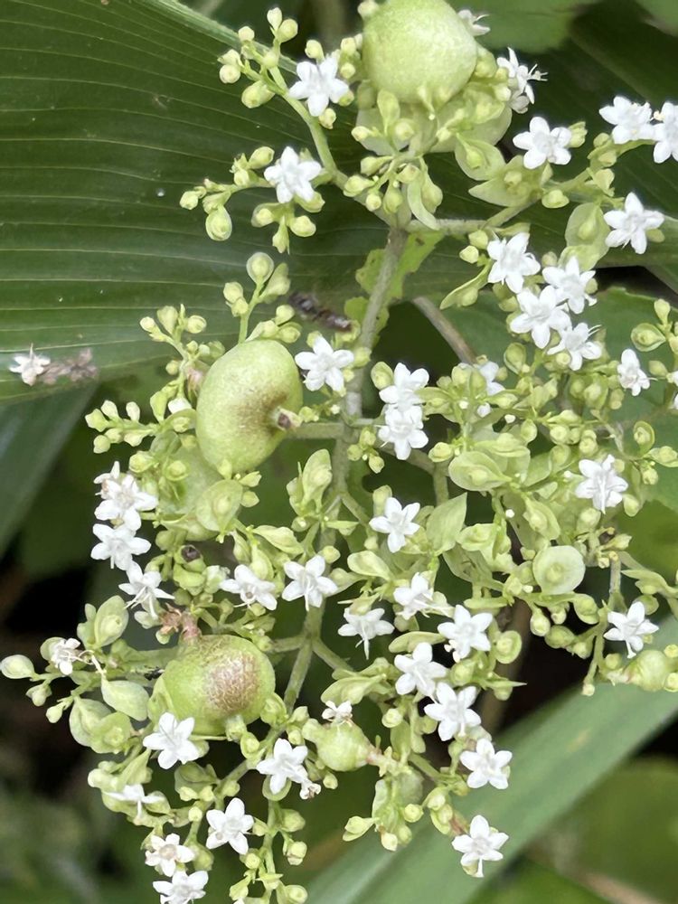 ④あおい玉ねぎのような物質は、オトコエシニセハリオタマバエにより果実に形成されたムシコブ「オトコエシミフクレフシ」です