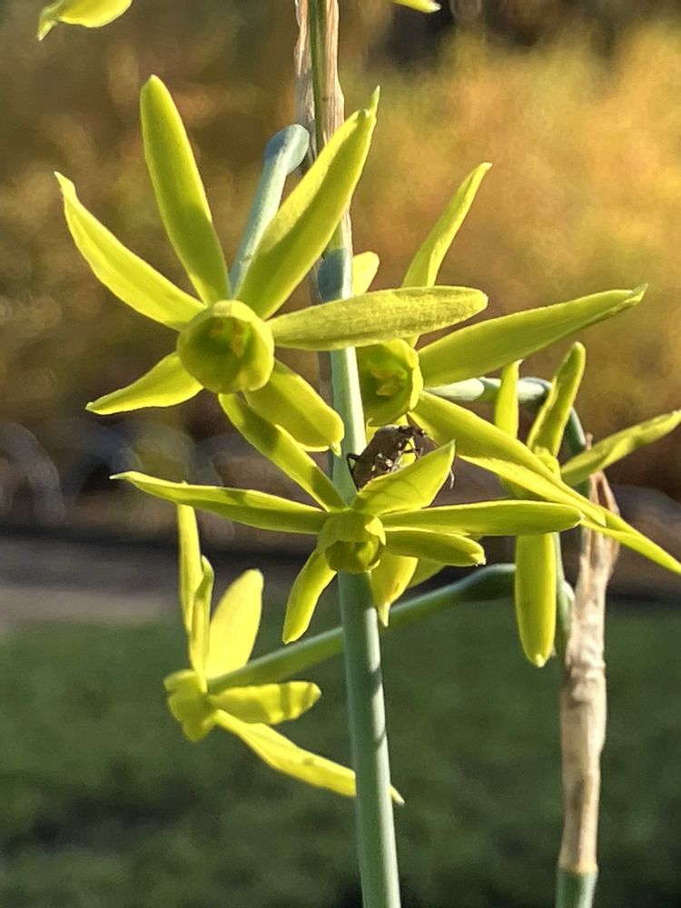 秋にも水仙って咲くんですね。なんで秋に今日のお花なのかなぁ🤔⁉️と不思議に思ってました。初めてみる品種です。白いの清楚な雰囲気がステキ💕