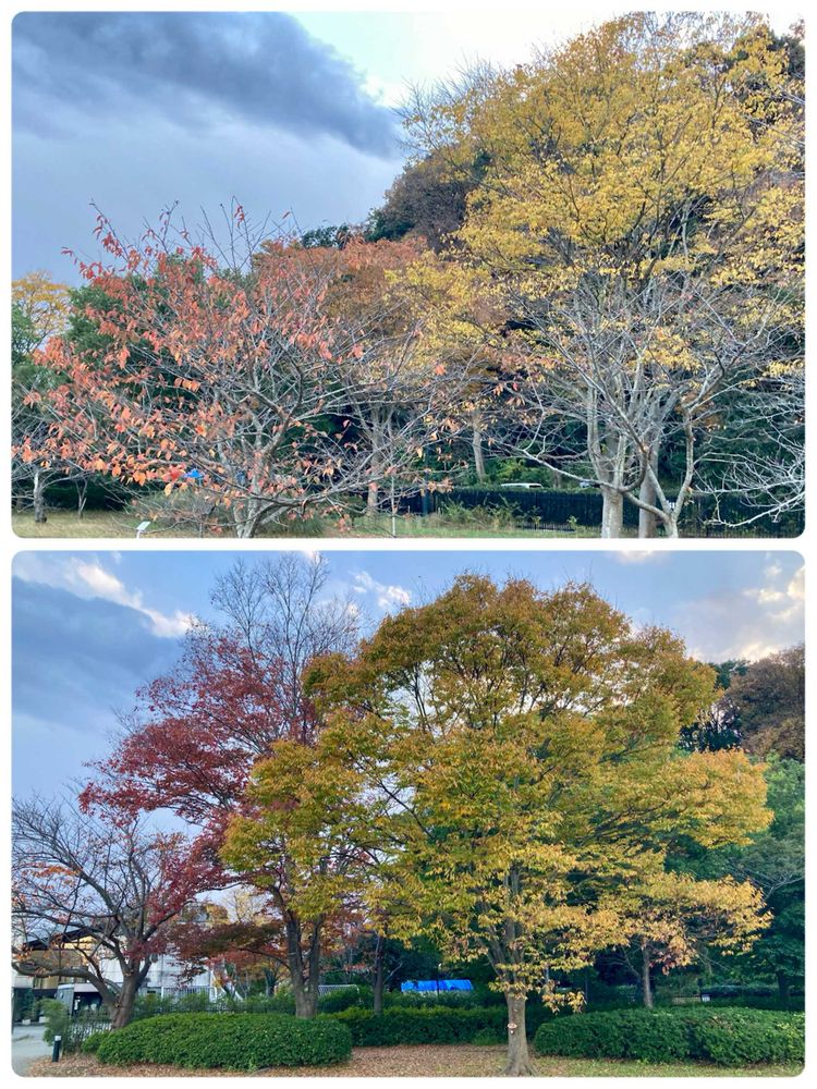 公園の紅葉・黄葉が深まり、「カツラノキ」は葉を殆んど落としていた。