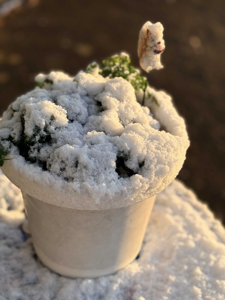 鉢植えのパセリも雪化粧⛄️🌳
