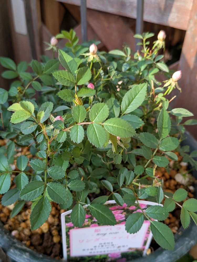 ミニ薔薇ワンダーファイブ花がら切ってなんだか寂しいでも、新葉が…🌿🌿🌿