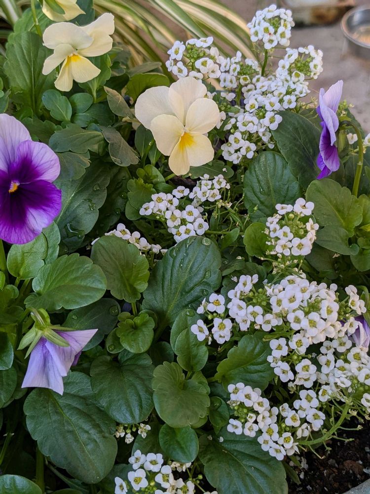 寄せ植え&パンダスミレ狭いベランダの賑わいです。