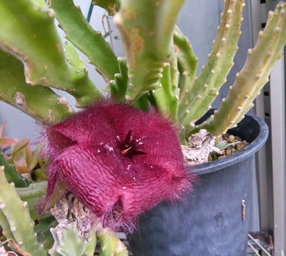一年中外のガラスケースの中 気がついたら咲いていました🎶