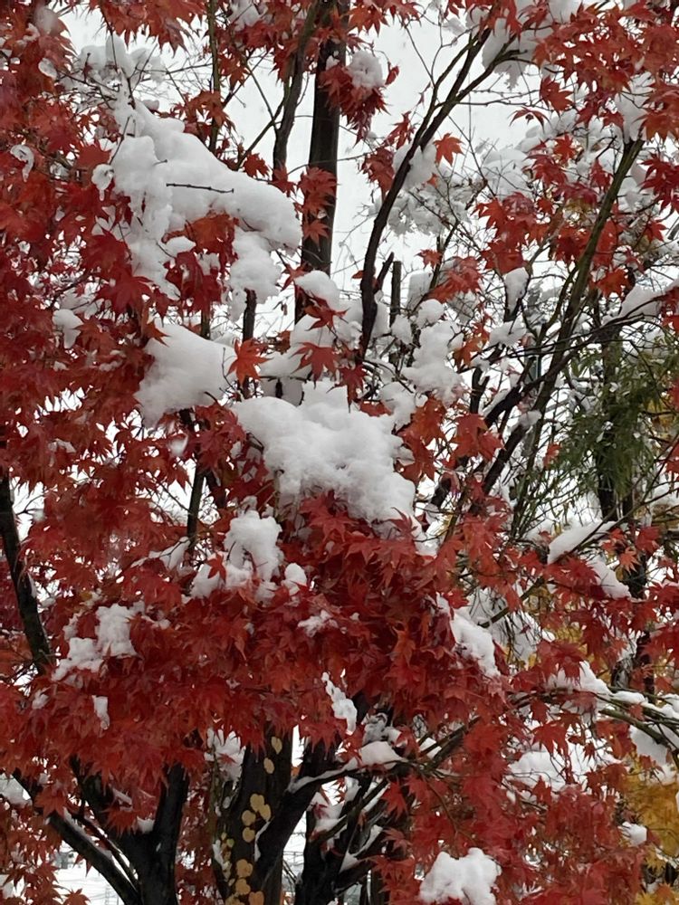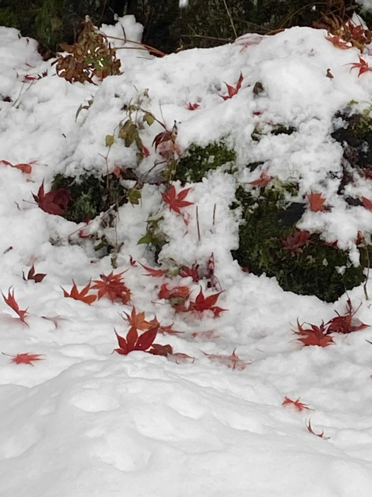赤いもみじ🍁と雪の白❄のコントラストが綺麗ですね。