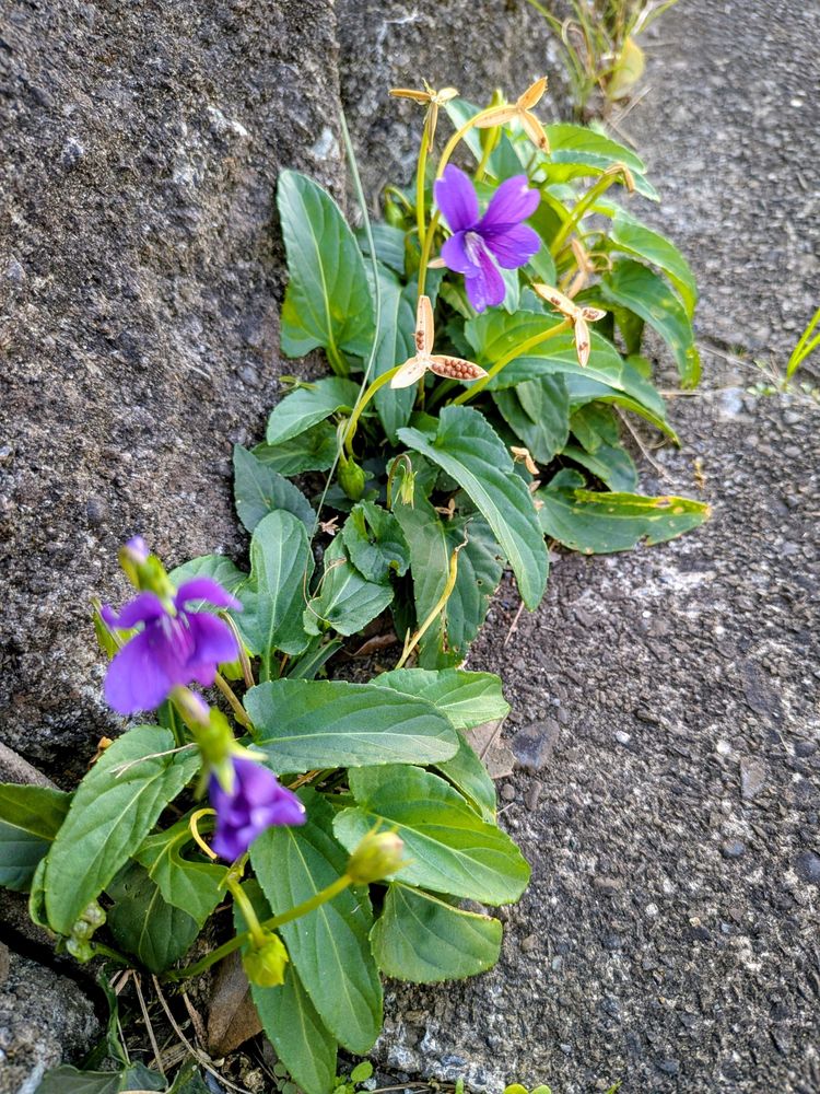道端のブロックの隙間からたくさんのスミレが返り咲いていて胸キュン💘です。