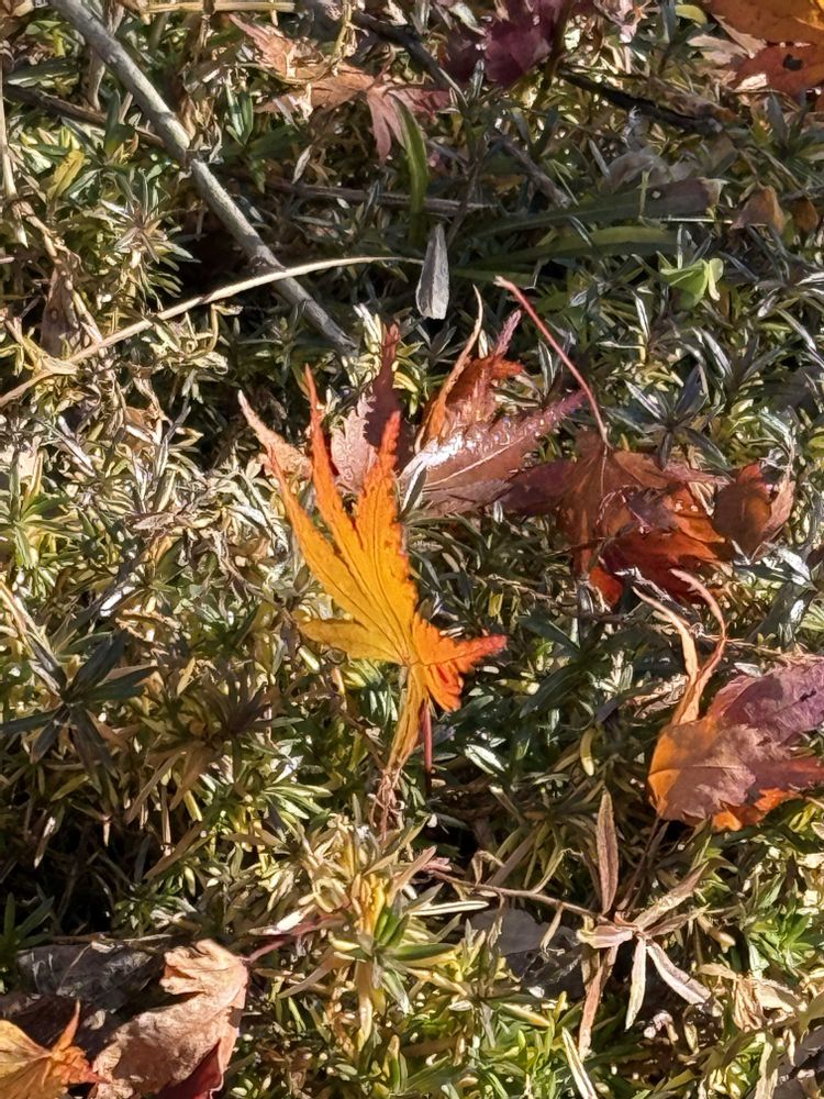 1・2 苔の上に落ちている様に見えるモミジ🍁