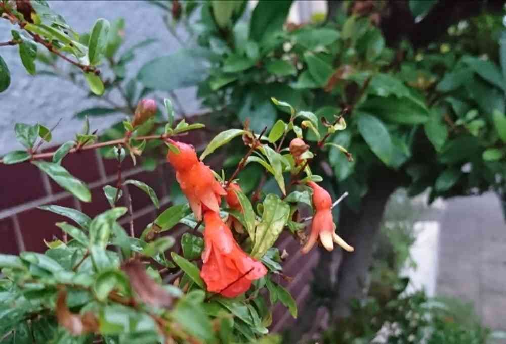 母の庭に姫ざくろの花が咲いていた。遠い昔に父が植えたらしい。今年も咲いていた。
