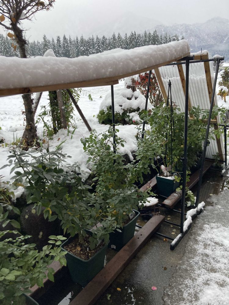 簡易屋根が雪の重みで向こう側、倒壊しちゃったよ💦