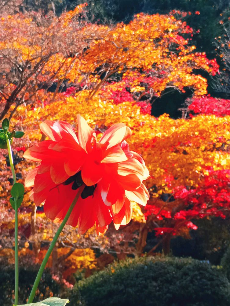 モミジとダリアの共演