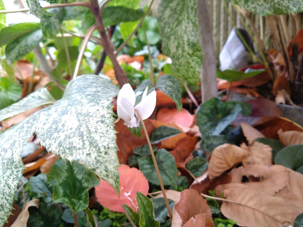 落ち葉のなかで咲いているのも🍂