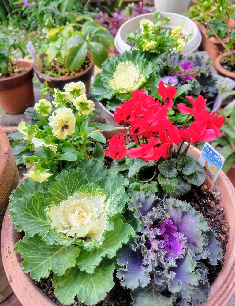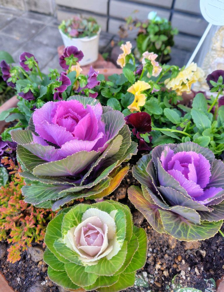 ①センス悪いと言われた😤葉牡丹寄せ植えをなんとかすべくリベンジ✊️。