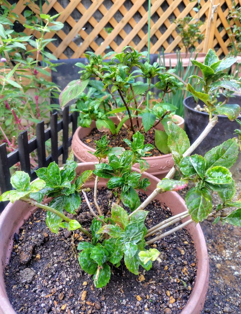 ③紫陽花の鉢が小さくなってるのを見て見ぬふりしてたけど…😑、遂に弱ってきたので、意を決して植え替え。