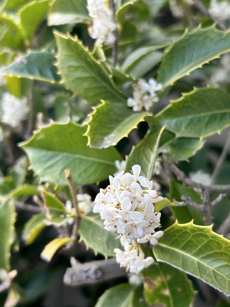 門の所に植えている柊の花が咲いて、甘い香りを漂わせています😊