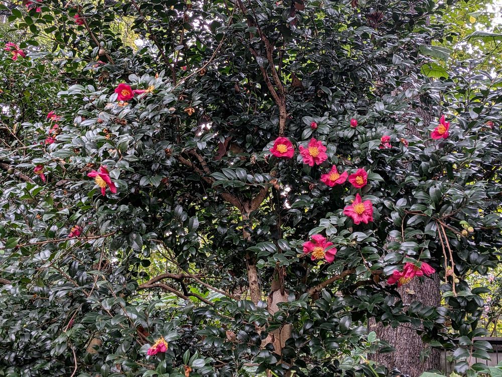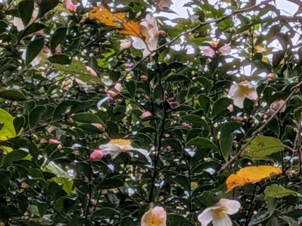 先日行った新宿御苑では、山茶花が咲き始めていました。