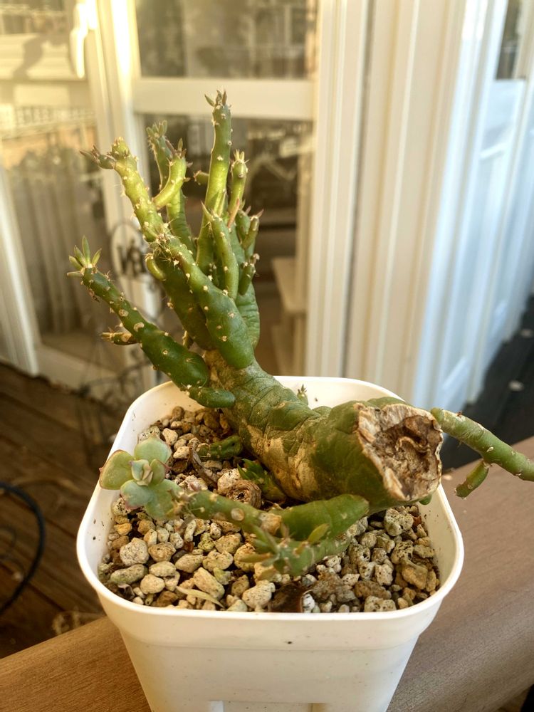 上の方の大丈夫そうなところをカットしてみようかと、横の空いてた鉢にとりあえずポイっとしてそのまま忘れてました😅