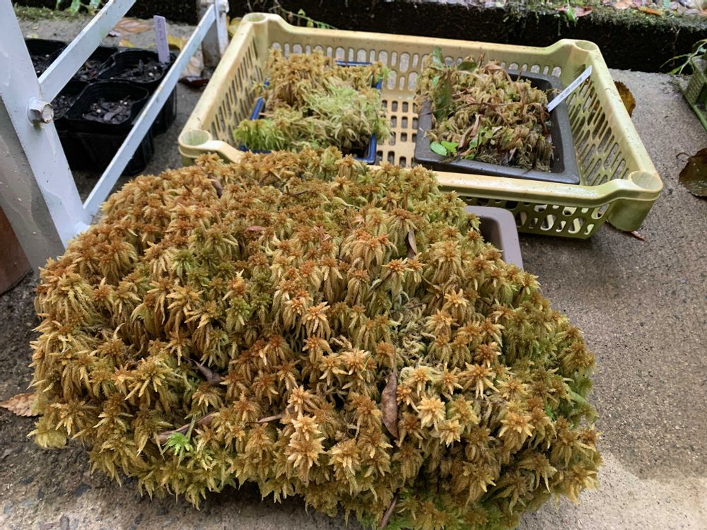 大きめの鉢に赤玉土と乾燥のミズゴケをまぜてそのままそっとのせて