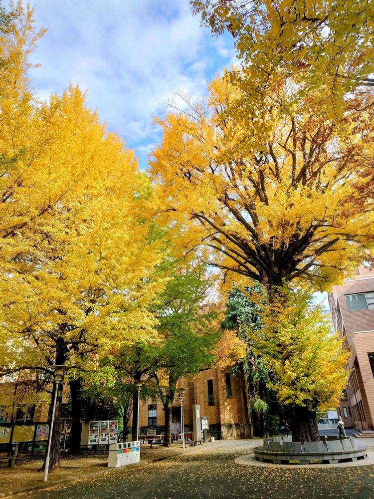 今日の昼休み、職場近くの大学構内で見かけたイチョウ。