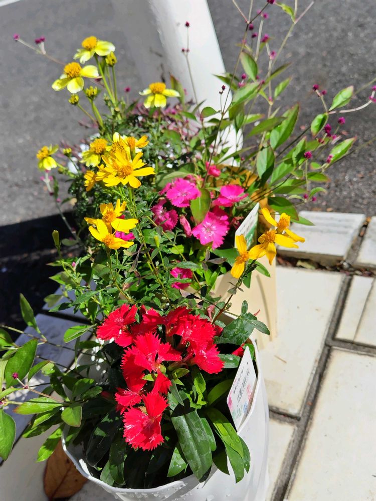 ①出来上がった寄せ植え鉢がホームセンターで半額になっていたので、2鉢お買い上げ😄