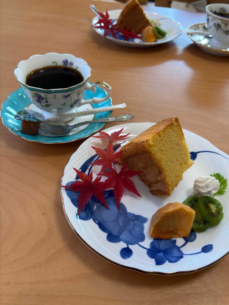 ④この庭を眺めながらの食事会。デザートのあしらいのモミジも素敵🍁✌️