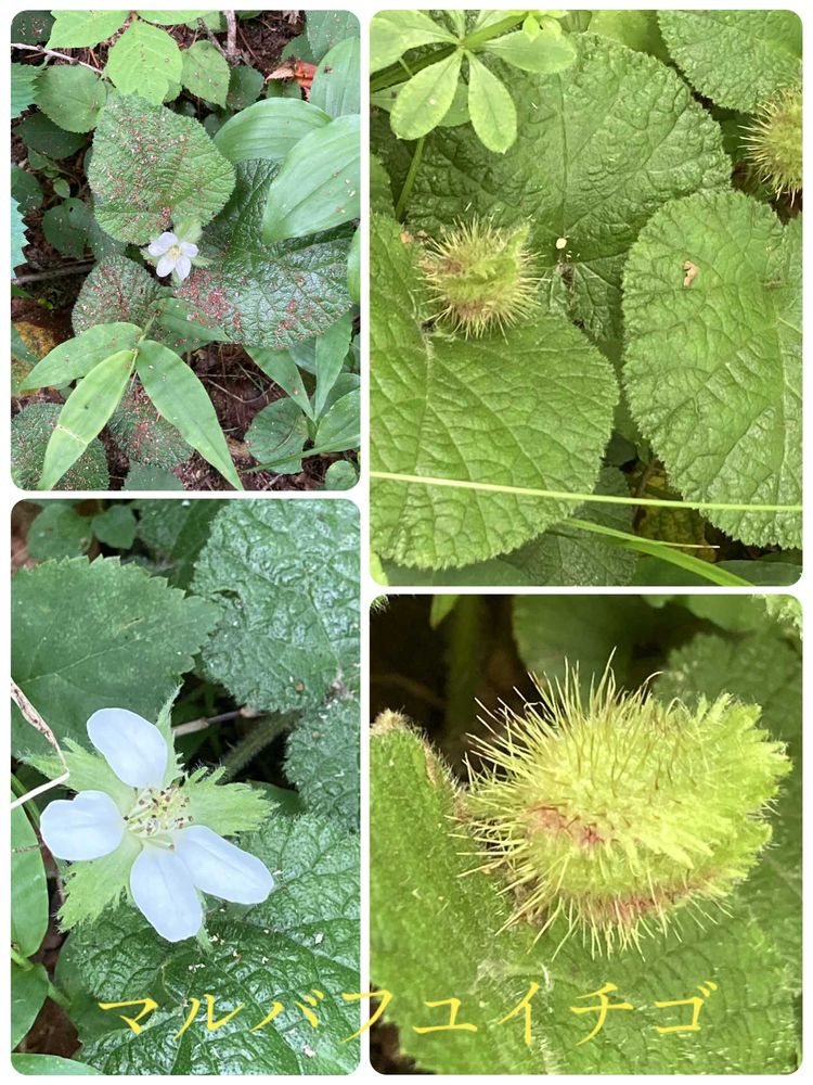 葉はほぼ円形で、浅く3〜5裂、5~10センチ 果実は集合果で1㌢