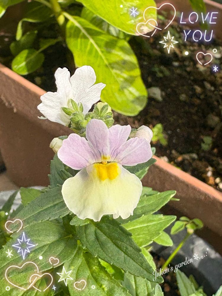 ④昨年寄せ植えにお迎えしたネメシアのピンクレモネードのお花が酷暑も乗越えてまた咲いてくれました😍バニラのような香りもして可愛い💛🩷💚
