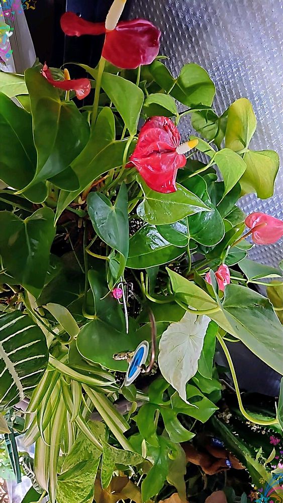 🍀植え替えた アンスリウムの寄せ植えが だんだん賑やかになってきました😀