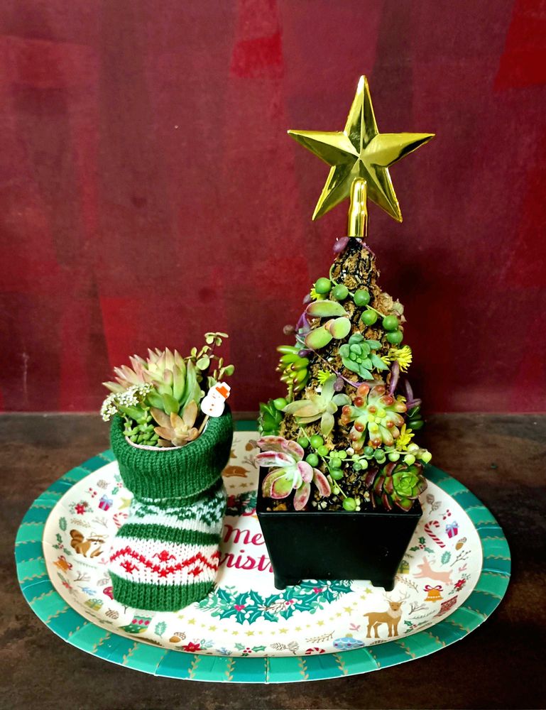 多肉サークルで作った小さなクリスマスツリー🎄と靴下🧦