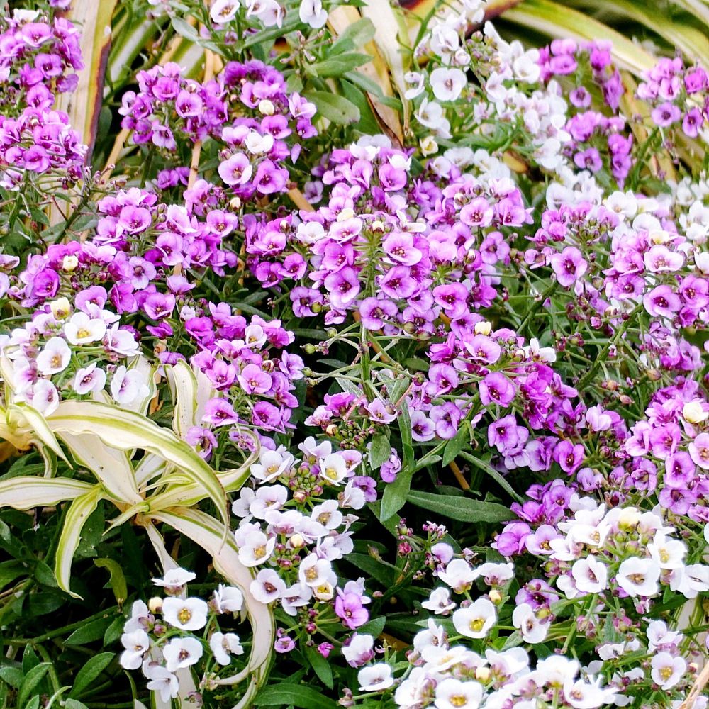 花壇でアリッサムの花が綺麗に咲いていました。