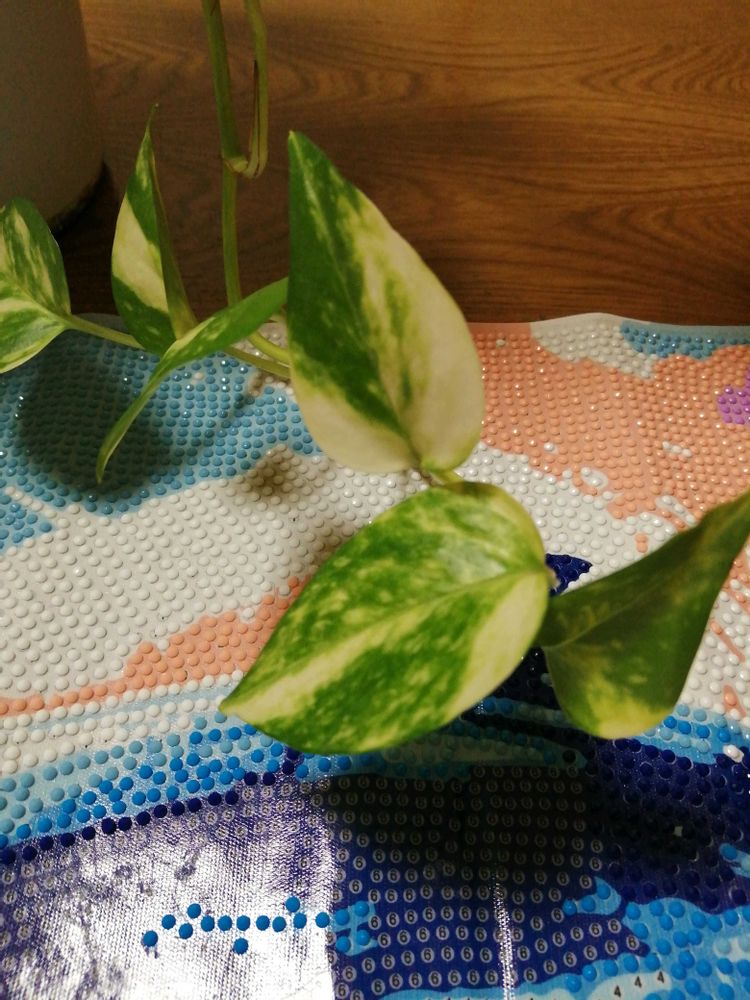 ポトスを前に夢中になりビーズアートしていますが
